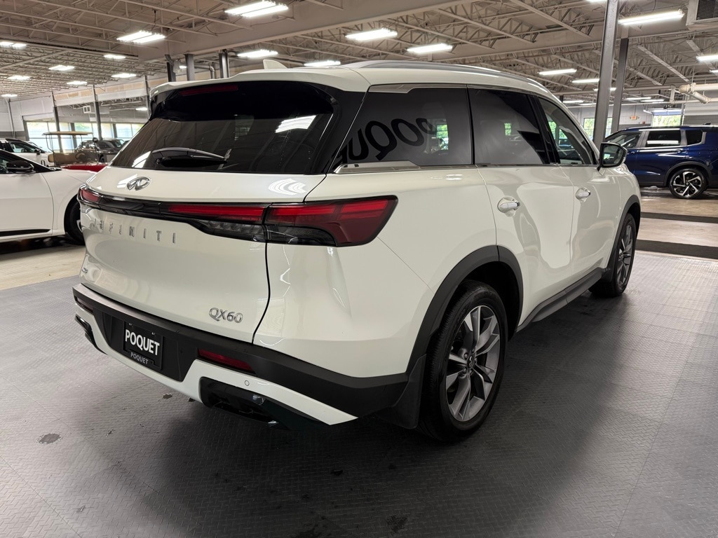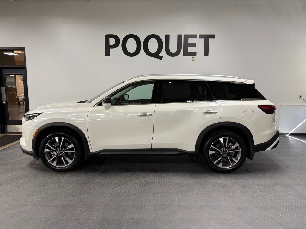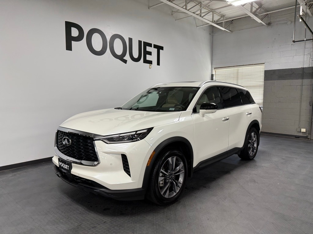 Step into refined comfort with our 2024 Infiniti QX60 Luxe, finished in Majestic White on Sandstone with just 6,000 miles and an original MSRP of $61,680. This one-owner SUV comes loaded with the $1,500 Vision Package and $900 Performance Audio Package, blending advanced tech with premium sound. Inside, the 3-row cabin is both elegant and functional, with supportive front seats and clever One-Touch second-row seating that makes accessing the third row effortless. With a 22 MPG combined rating, a 5-Star overall safety score from the NHTSA, and recognition as an IIHS Top Safety Pick, the QX60 is as safe and efficient as it is stylish. Like every vehicle here, it is Poquet and Carfax Certified for your peace of mind. Come see why we've earned a 4.9-star rating on Google!